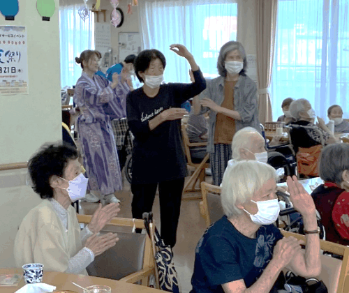 フラダンスをされていた利用者様もいらっしゃり、お手本を示してくださいました。
